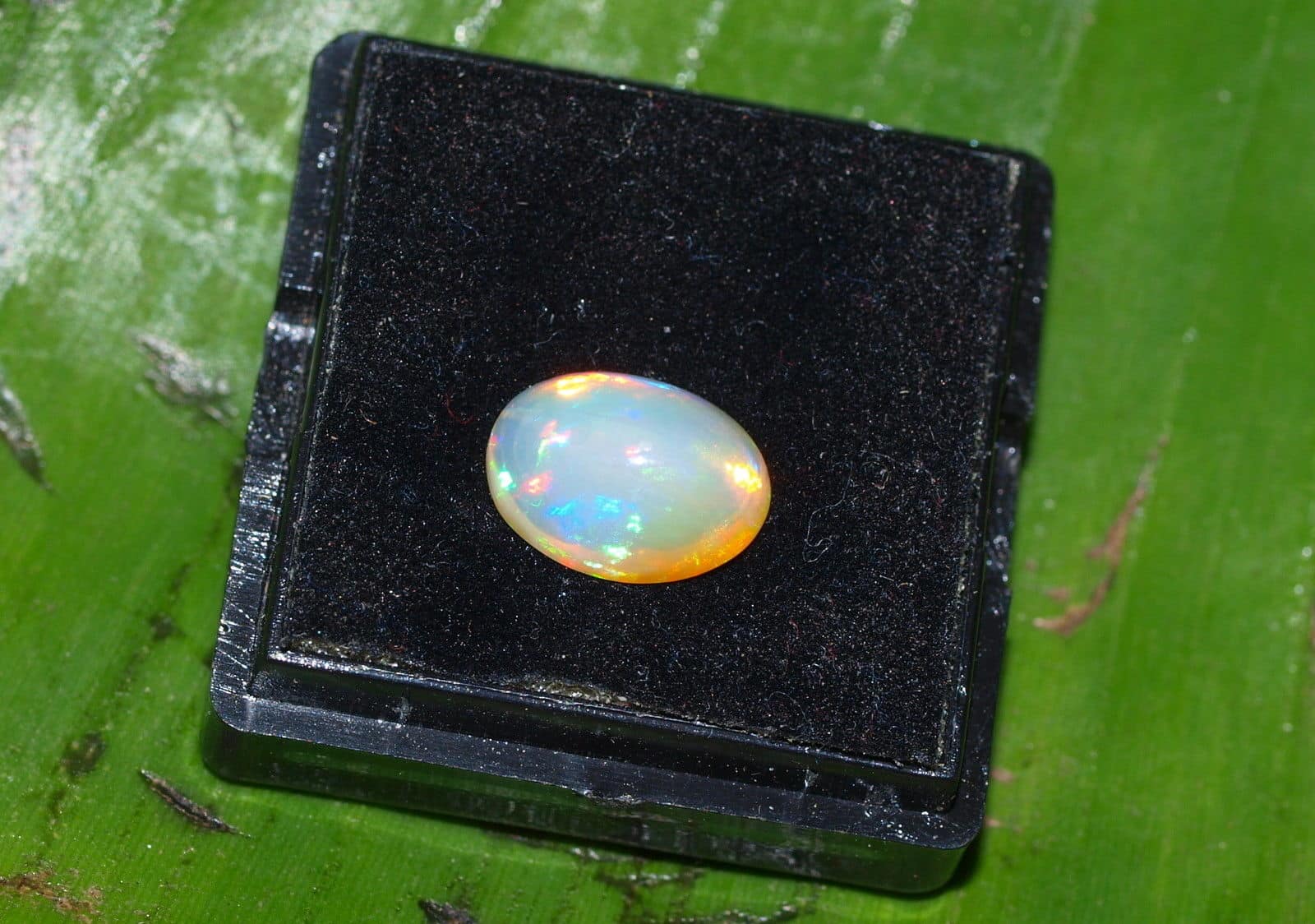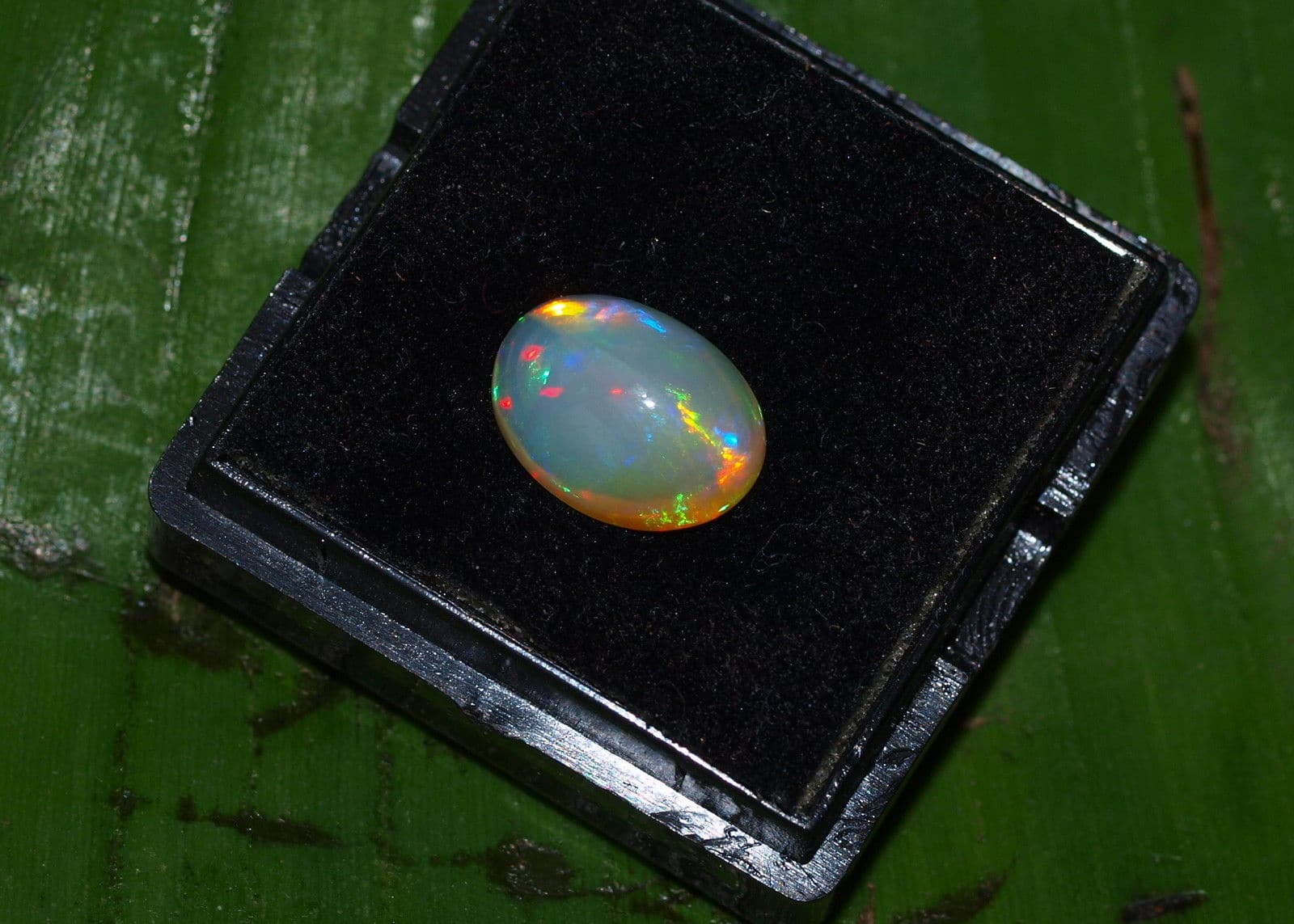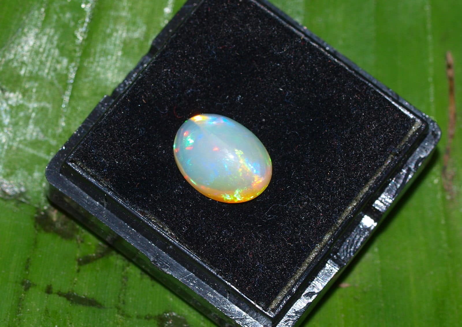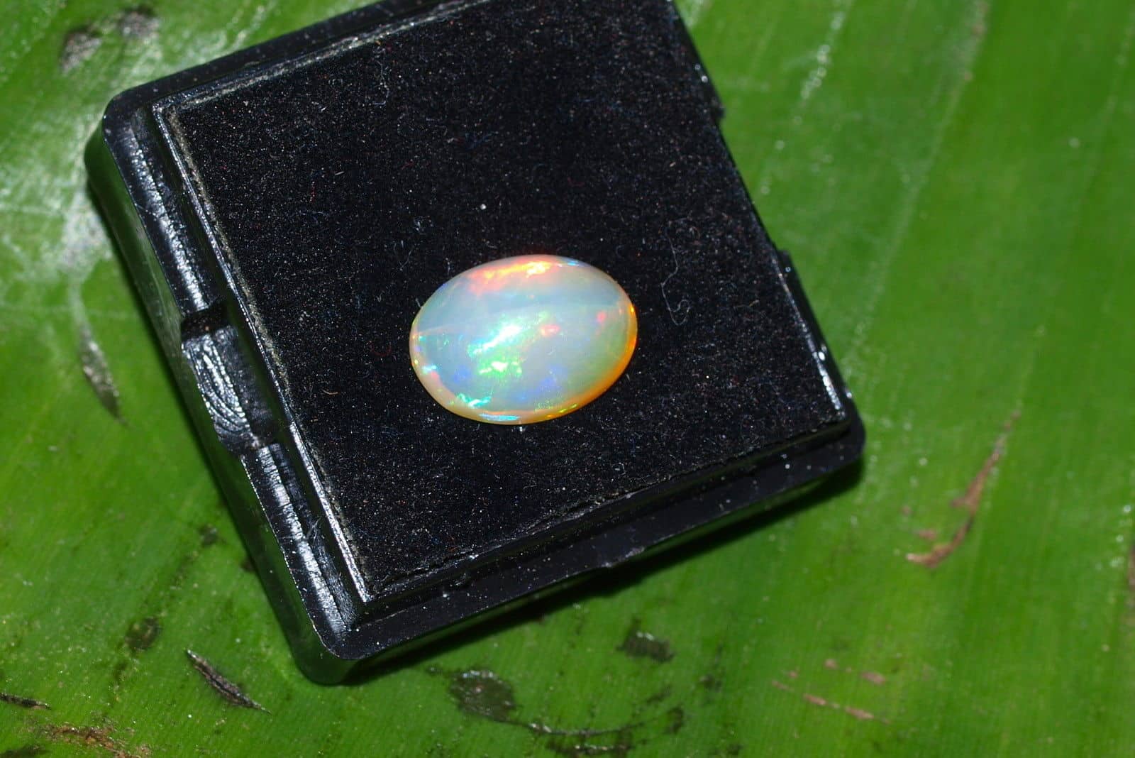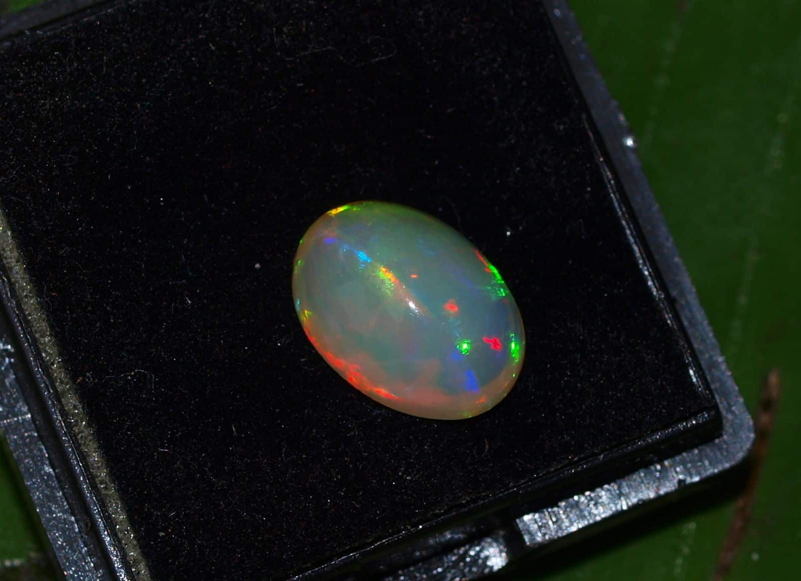 Opal Edelopal Anzahl : 1 Herkunft : Äthiopien Schliff : Cabochon oval Grösse 4,8 x 8 x 10,8 mm Gewicht : 1,88 ct Farbe : Blau, Grün, Rot, Orange Sehr lebendiger, feiner Opal mit bunten Farbspiel Für Schmuckanfertigung oder auch als Sammlerstein geeignet Es handelt sich um einen echten natürlich gewachsenen Stein, keine Synthese ! Es wird der abgebildete Stein verkauft !