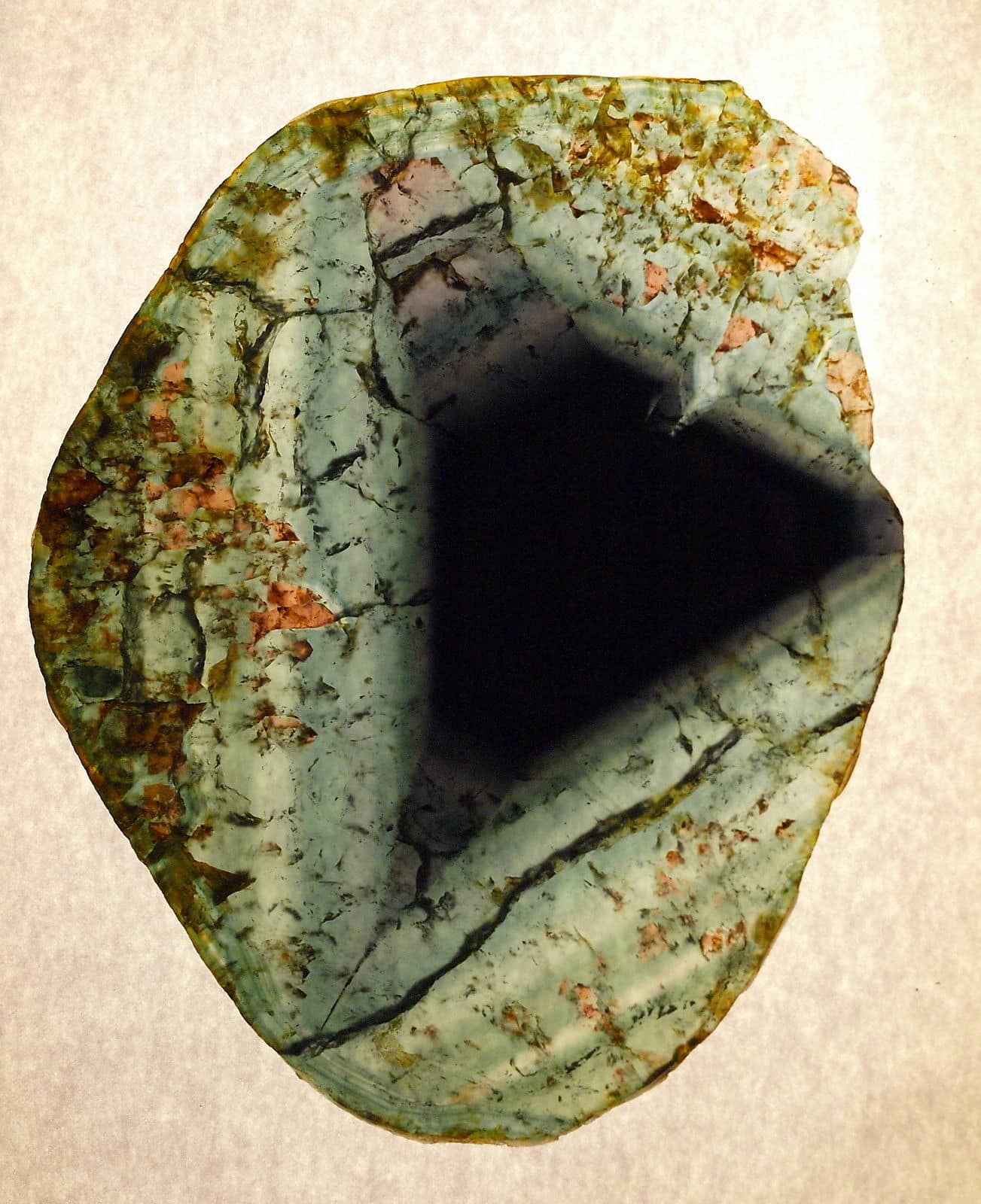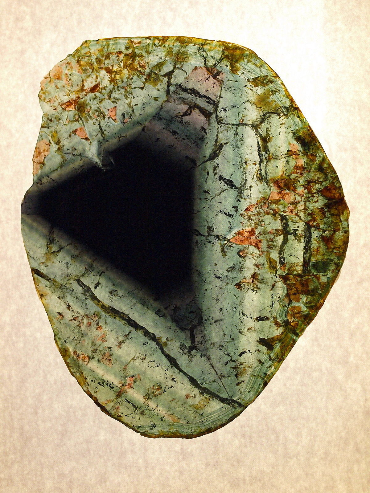 Turmalin-Scheibe Anzahl : 1 Herkunft : Madagaskar Schliff : Kristallquerschnitt, Scheiben , Vorderseite poliert Grösse : 2,5 x 99,5 x 120,2 mm Gewicht : 56,0 g Farbe : Grün, Lila, Gelb, Rosa Reinheit : schöne grafische Wirkung der Kristallstruktur Zur Schmuckherstellung oder als Sammlerstein geeignet Es handelt sich um einen echten natürlich gewachsenen Stein, keine Synthese ! Es wird der abgebildete Stein verkauft