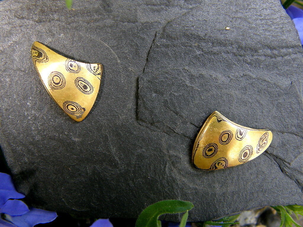 Mokume gane Ohrstecker Gold 900/750 Palladium Unikat