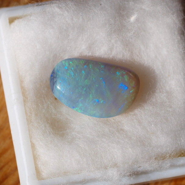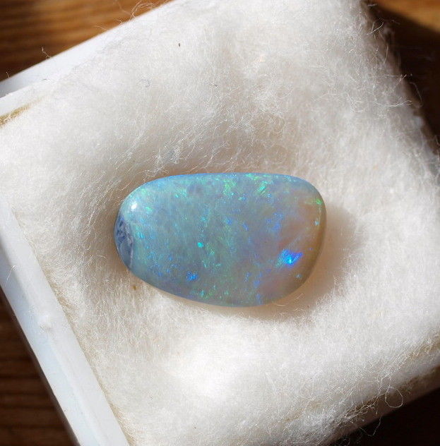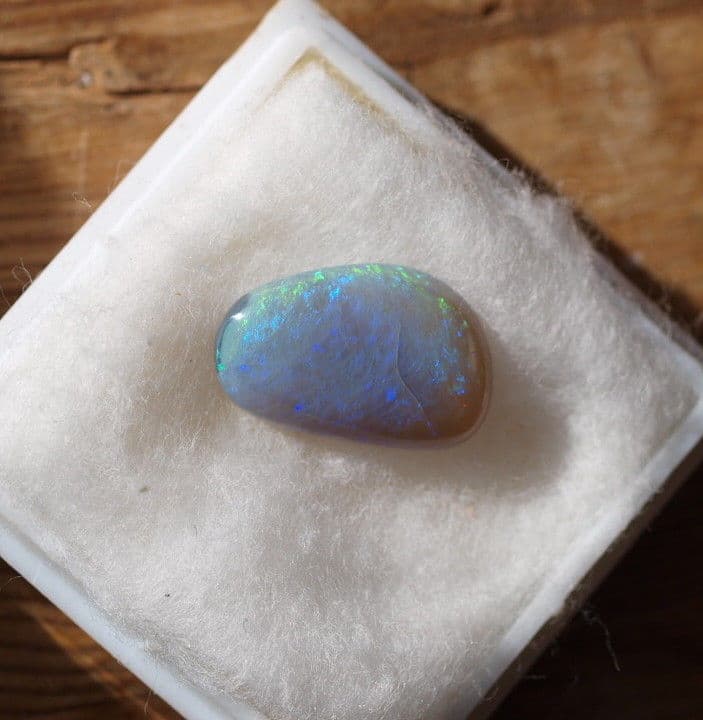 30. November 2020Attraktiver Edelopal Opal semi-black Australien 6,53 ct 5,5 x 11,1 x 17,5 mm