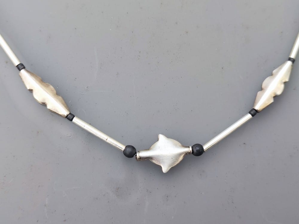 Unikat Kette Silber 925 Röhrchen Blätter Hämatit Kugeln 48 cm