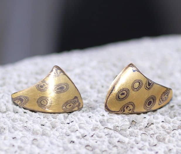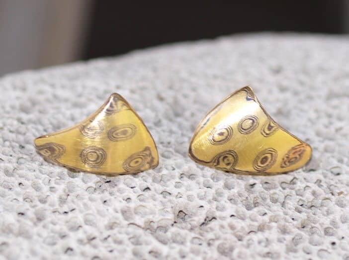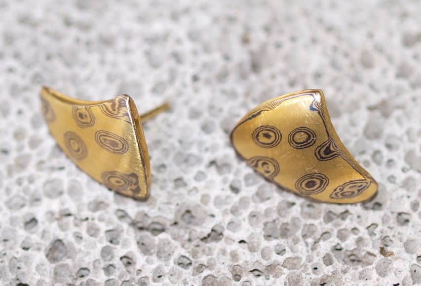 Wirklich einzigartig sind diese Ohrstecker in Mokume Gane Technik