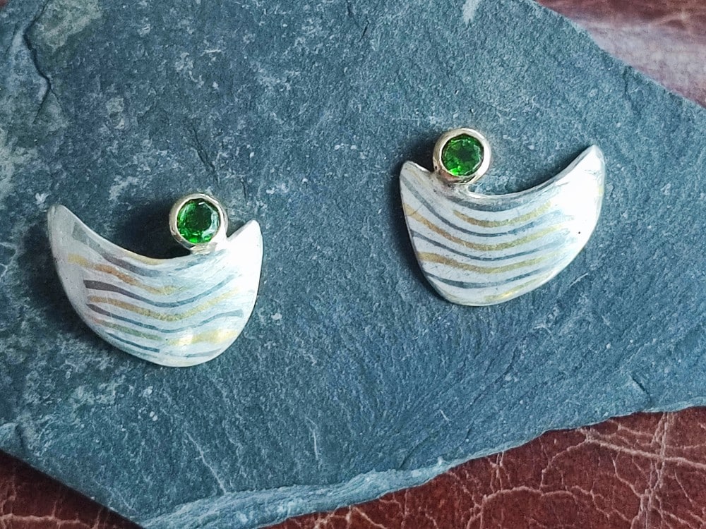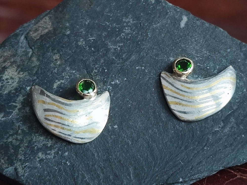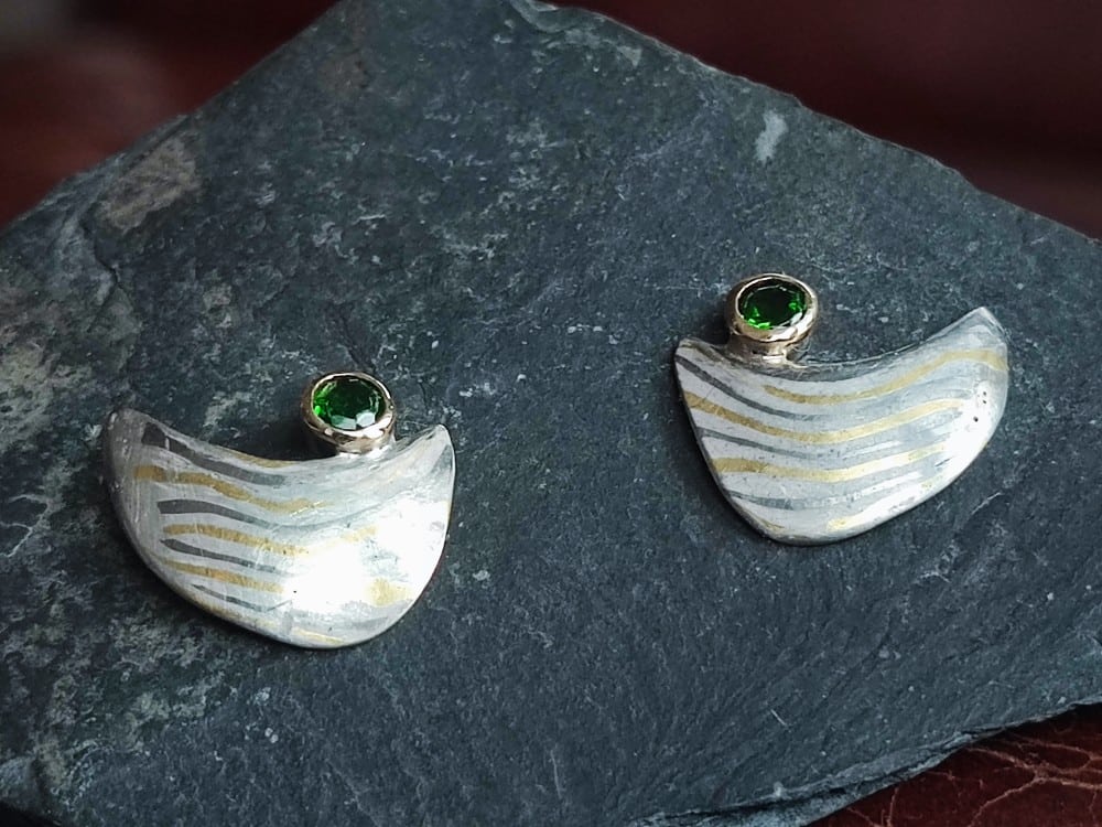 3. Dezember 2018Mokume Gane Ohrstecker Gold 900 Palladium 500 Silber Chromdiopsid Unikat