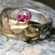 Unikat Ring Silber 925 Gold 750 Rindensstruktur Rubin Ringgröße 53 Leguanhaut mit Strukturen