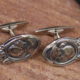 Manschettenknöpfe antik versilbert D.B.G.M.Jugendstilmotiv Frauenkopf ca.1946
