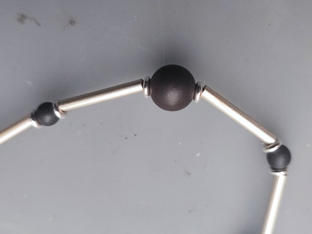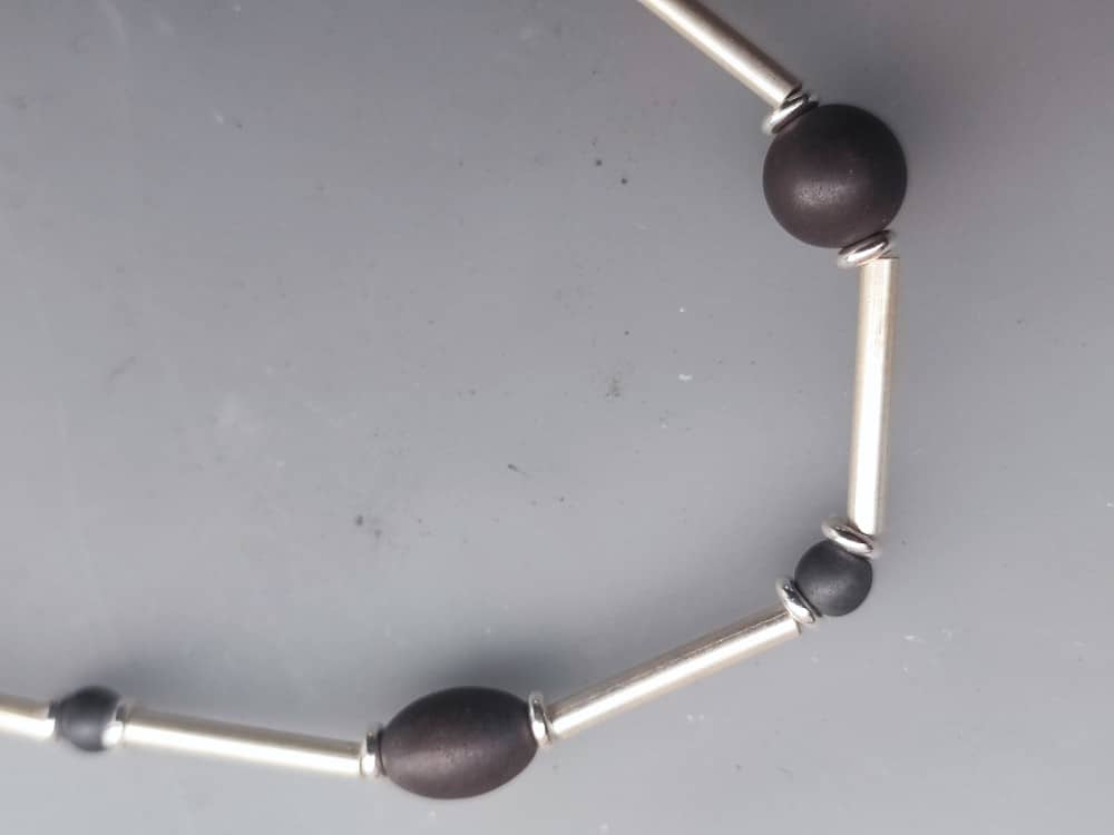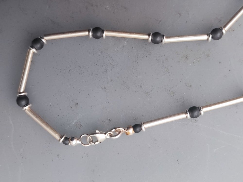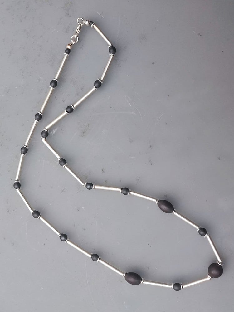 1. November 2016Unikat Kette Silber 925 matt Stäbe Röhrchen Hämatit Kugeln matt 45 cm