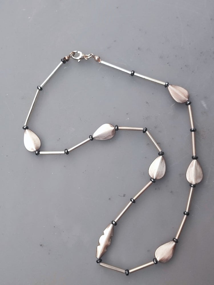 unterbrochen von kleinen Ösen und Hämatitboutons.