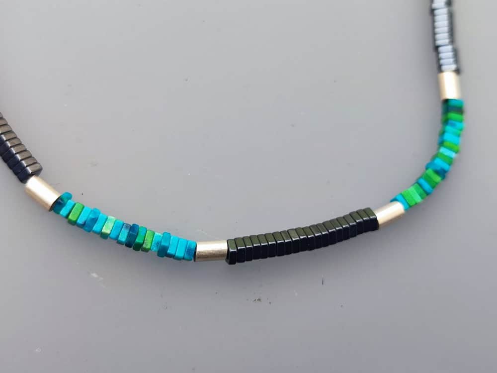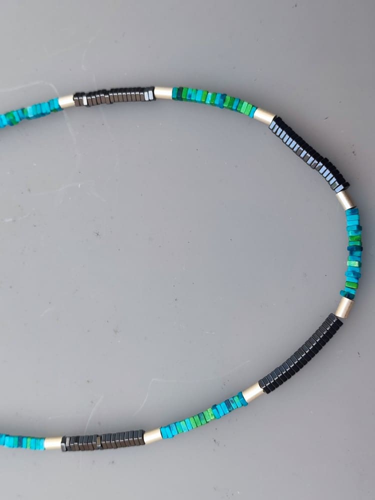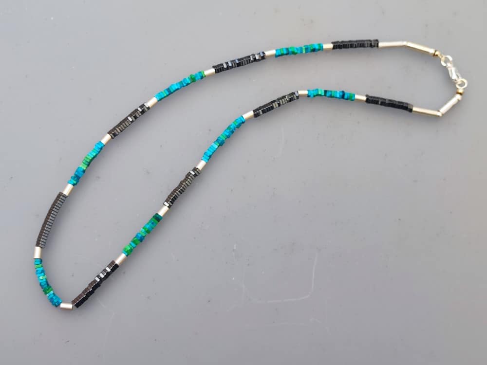 3. November 2015Unikat Kette Silber 925 Zylinder Hämatit Chrysokol viereckige Chips 44 cm