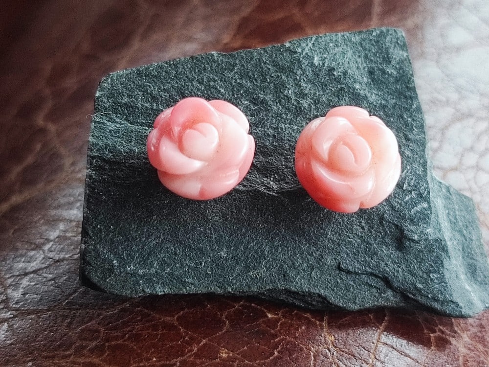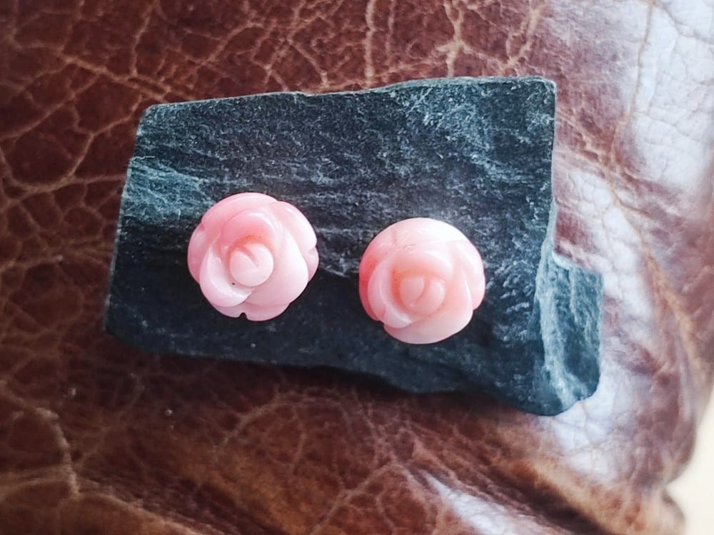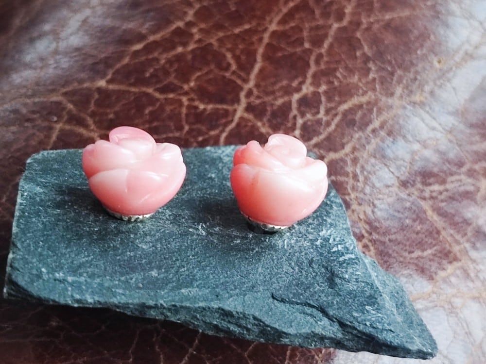 19. März 2015Unikat Ohrstecker Silber 925 Koralle rosa Rose handcut handmade 8,5 mm