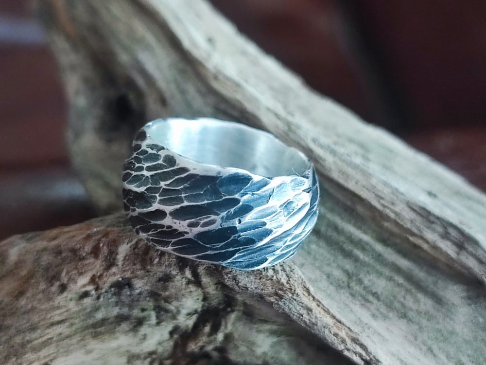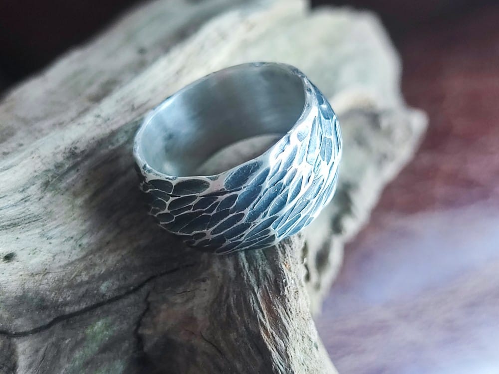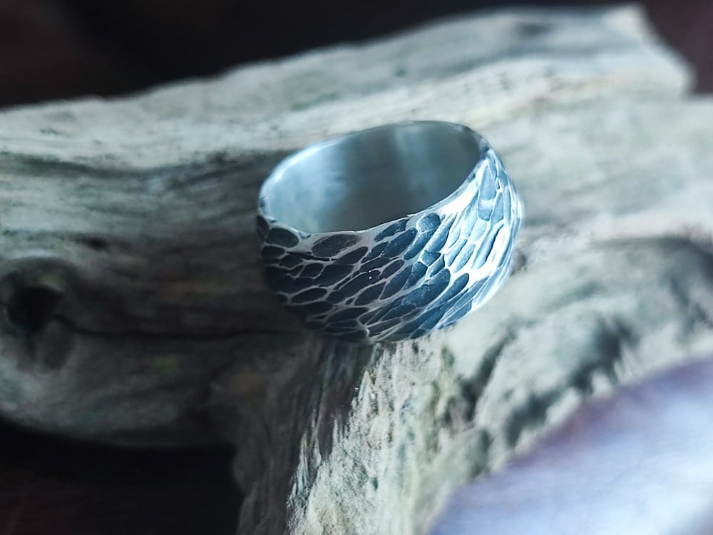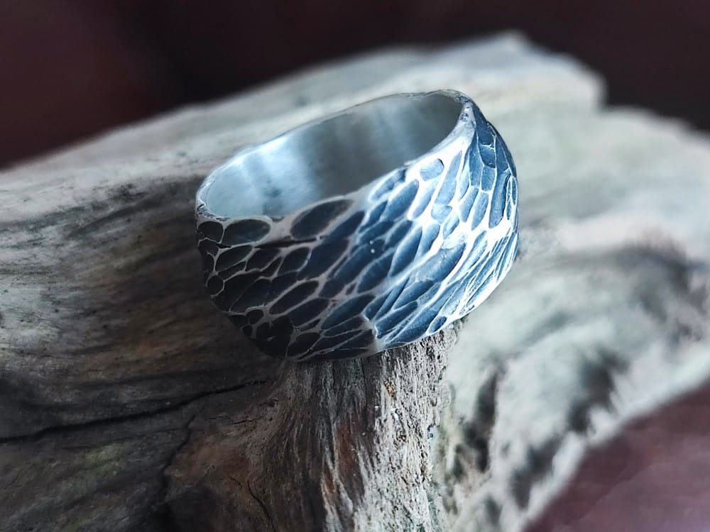 7. Juli 2017Unikat Ring Silber 925 grob geschmiedet mit Strukturen Ringröße 54 Rindenstruktur geschwärzt